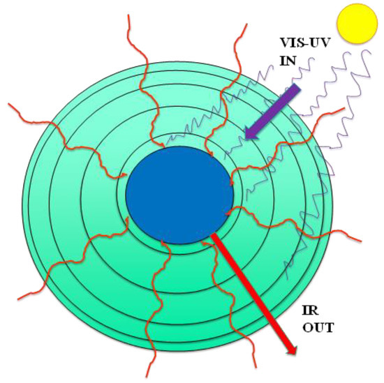The energy received from the sun according to the steady state radiation balance and lost by the Earth is constant total energy, as the long-term global temperature fluctuations are less than a fraction of 1K over hundreds of years. The Stefan–Boltzmann law determines the energies in radiation energy scales of Equation (6) as the fourth power of temperature [8,19]. This has a stabilizing effect on the exchange, and the flux emitted by Earth tends to be equal to the flux absorbed, close to the steady state. This result greatly simplifies the research question: what is the effect of changing the concentration of one or more of the atmospheric components on the concentric thermal average temperature <T> (z)?