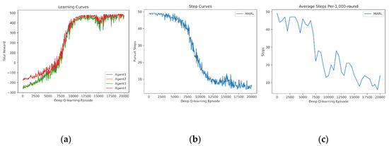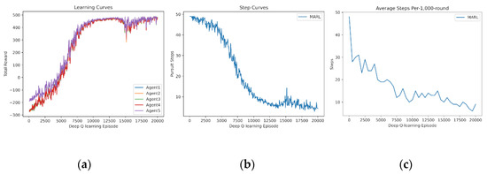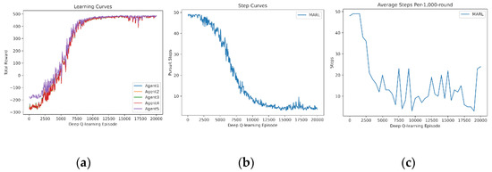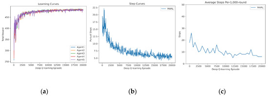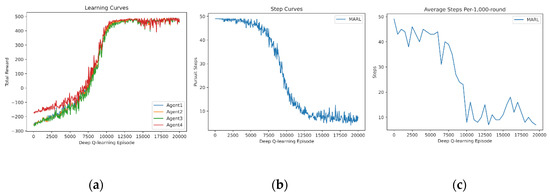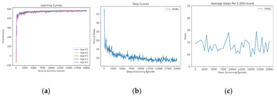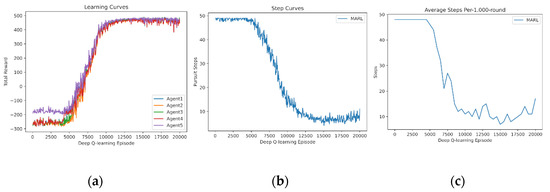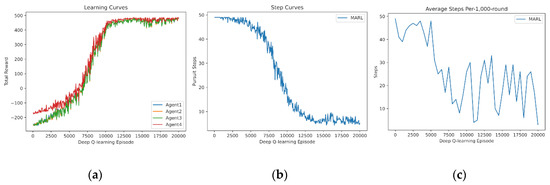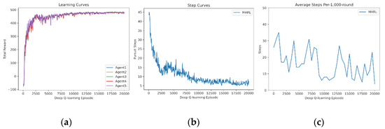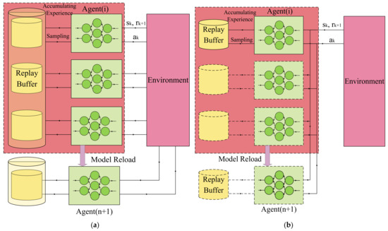 Figure 2a. Therefore, all the agents contribute to the experience set and optimize their policies based on the common replay buffer. Experience sharing benefits the exploration of the state–action space and accelerates the convergence of policies.