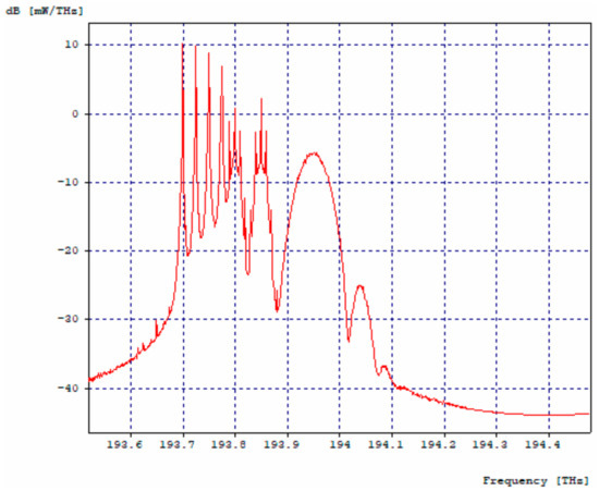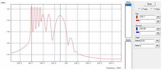 In this network model, it was possible to transmit 70 Gbps in a bandwidth of 271.212 GHz, as shown in Figure 6.