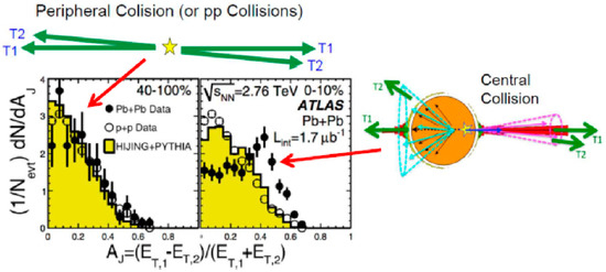 - Aad, G.; Abbott, B.; Abdallah, J.; Abdelalim, A.A.; Abdesselam, A.; Abdinov, O.; Abi, B.; Abolins, M.; Abramowicz, H.; Abreu, H.; et al. (ATLAS Collaboration), Observation of a Centrality-Dependent Dijet Asymmetry in Lead-Lead Collisions at √sNN = 2.76 TeV with the ATLAS Detector at the LHC. Phys. Rev. Lett. 2010, 105, 252303. [Google Scholar] [CrossRef] [Green Version]