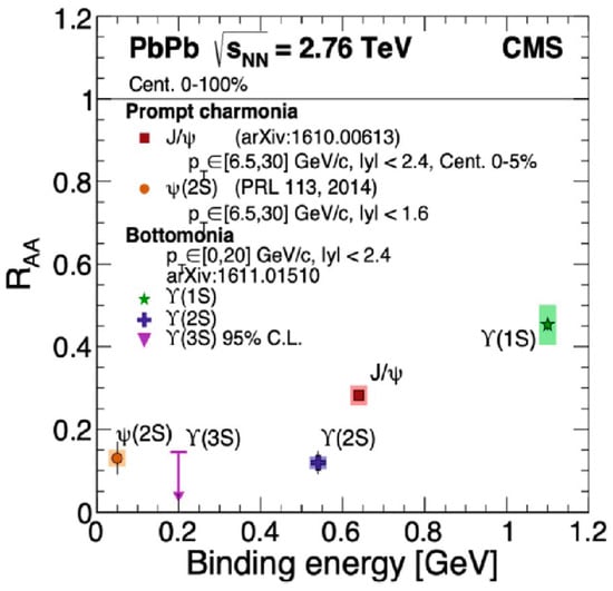 - Faccioli, P.; Lourenço, C. The fate of quarkonia in heavy-ion collisions at LHC energies: A unified description of the sequential suppression patterns. Eur. Phys. J. C 2018, 78, 731. [Google Scholar] [CrossRef] [Green Version]