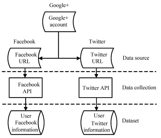 - Zafarani, R.; Liu, H. Connecting users across social media sites: A behavioral-modeling approach. In Proceedings of the 19th ACM SIGKDD International Conference on Knowledge Discovery and Data Mining, Chicago, IL, USA, 11–14 August 2013; pp. 41–49. [Google Scholar]