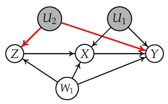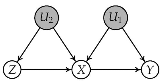 - Brito, C.; Pearl, J. Generalized instrumental variables. In Proceedings of the Eighteenth Conference on Uncertainty in Artificial Intelligence; Morgan Kaufmann Publishers Inc.: San Francisco, CA, USA, 2002; pp. 85–93. [Google Scholar]