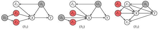 - Pearl, J. On the testability of causal models with latent and instrumental variables. In Proceedings of the Eleventh Conference on Uncertainty in Artificial Intelligence; Morgan Kaufmann Publishers Inc.: San Francisco, CA, USA, 1995; pp. 435–443. [Google Scholar]