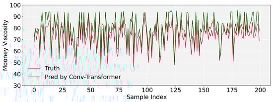 The tire industry [] has been developing rapidly in recent years, and the primary objective is to improve the quality of rubber. Mooney viscosity [] is used to assess the quality of manufactured rubber, and this measurement determines whether the physical properties of tires meet the standards of practical use. The variables impacting the Mooney viscosity are classified as dynamic time series variables that reflect changes in the working conditions (e.g., temperature, pressure, etc.) and static covariates that represent the initial state of the working conditions (e.g., equipment number, raw material origin, etc.) []. At present, the majority of methods for determining the Mooney viscosity include placing the rubber in a specific machine and estimating the Mooney viscosity using the motor’s current []. There is, however, a time delay between the completion of rubber processing and the determination of its Mooney viscosity. If Mooney viscosity can be determined immediately after rubber refining, it will be critical for optimizing the process flow. As a result, Mooney viscosity prediction becomes a worthwhile subject of study.