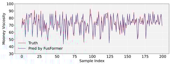 where  is the predicted Mooney viscosity, and  is the proposed FusFormer in this work. Each time series input  is composed of different time series of length , whereas the static covariates set  contains a variety of scalar features. The Mooney viscosity prediction can be considered as a supervised multivariable time series prediction task.