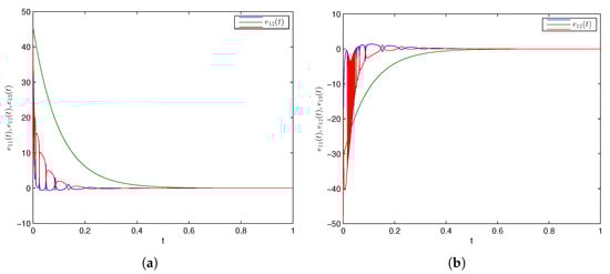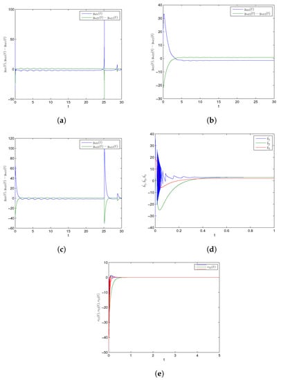 By inserting expressions for control functions described in Equation (28) into error dynamics Equation (27), we find that