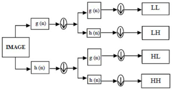 In [4], DWT is a mathematical tool which applies to decompose the images or frames into sub-bands. DWT is used in image watermarking, image compression, and removal of noise in audio and image [5]. DWT uses filters to split the signal into high- and low- frequency components. The edges are represented by high-frequency coefficients, which convey information about them, while the low-frequency coefficients are decomposed again into high- and low-frequency components. The wavelet transform is shown in Figure 1.
