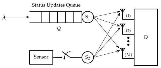- Kaul, S.K.; Yates, R.D.; Gruteser, M. Status updates through queues. In Proceedings of the 2012 46th Annual Conference on Information Sciences and Systems (CISS), Princeton, NJ, USA, 21–23 March 2012; pp. 1–6. [Google Scholar]