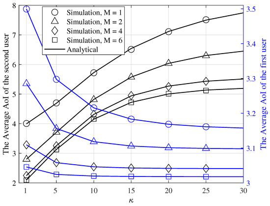 Now, using Equations (27) and (28), the average AoI of the second user is described as