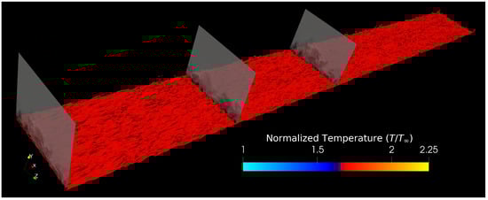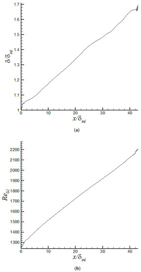 - Injecting accurate, time-dependent inflow turbulent fluctuations is required to reduce the streamwise computational domain length since the flow is no longer required to develop from freestream conditions. This allows for the simulation of larger-scale systems (i.e., larger ) [37,45].