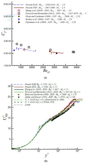 - Pirozzoli, S.; Bernardini, M. Turbulence in supersonic boundary layers at moderate Reynolds number. J. Fluid Mech. 2011, 688, 120–168. [Google Scholar] [CrossRef]