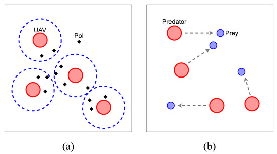 Illustrations of (a) UAV Recon and (b) Predator-Prey.