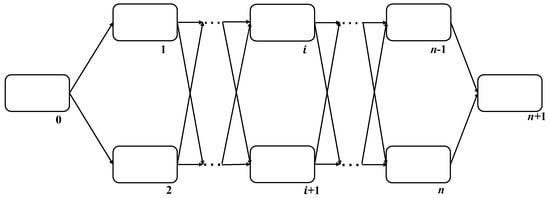 The tissue-like P system is composed of multiple single membrane cells, which rely on designated channels for communication. The basic membrane structure of the tissue-like P system is shown in Figure 2. The initial object is in the input cell (membrane 0), using rules and communication mechanisms to correspond between cell 1 and cell n. Cell n + 1 is the output cell stored in the obtained results.
