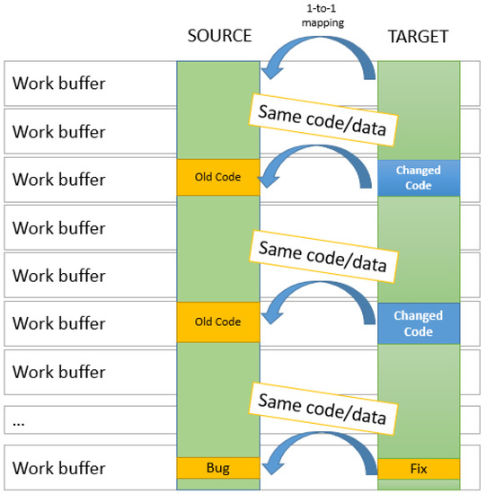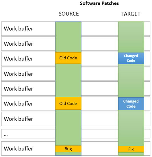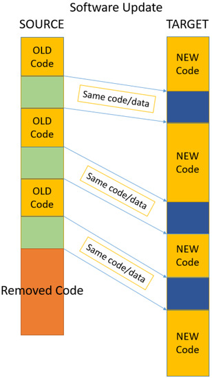 A binary code update based on binary differencing is also used in the automotive industry. Nowadays, there are hundreds of small electronic control units (ECUs) and controller devices located in modern vehicles; they are mostly responsible for controlling specific functions); thus, updating and maintaining them so they are up to date is a serious task. Once a vehicle leaves its manufacturer, software updates related to bug fixes, security, or any feature update are required to keep the ECUs up and running and updated with the latest software [21]. In Borui et al. [22], the authors discussed a differencing algorithm for reprogramming resource-constrained IoT devices. Called S2, this algorithm was said to be used to achieve small memory and flash footprints by leveraging a topological sort based on an in-place reconstruction mechanism and a stream reconstruction technique; it also achieved a smaller delta size by using prediction-based encoding. The algorithm is based on the bsdiff [7] algorithm, which is known to be very slow at generating patches and only suitable for working with small data buffers. Furthermore, it is well known that time increases linearly by the size of the data buffer while the buffer is processed by using bsdiff.
