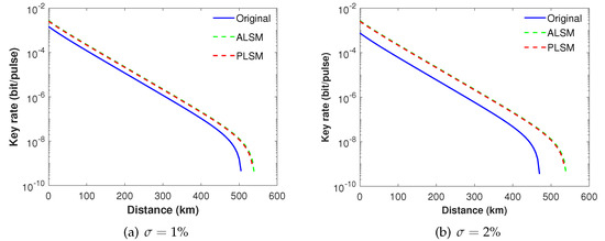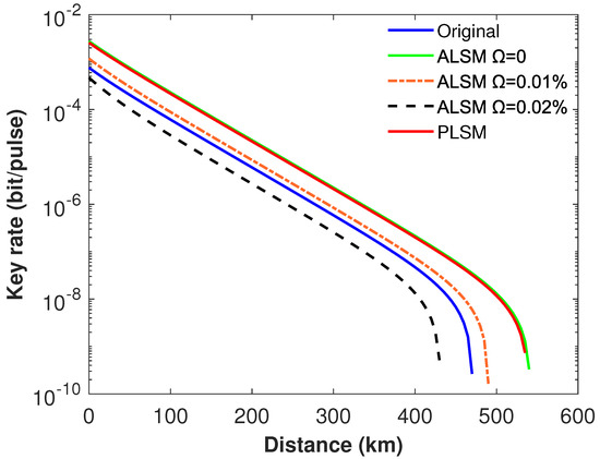 - Wang, S.; He, D.-Y.; Yin, Z.-Q.; Lu, F.-Y.; Cui, C.-H.; Chen, W.; Zhou, Z.; Guo, G.-C.; Han, Z.-F. Beating the fundamental rate-distance limit in a proof-of-principle quantum key distribution system. Phys. Rev. X 2019, 9, 021046. [Google Scholar] [CrossRef] [Green Version]