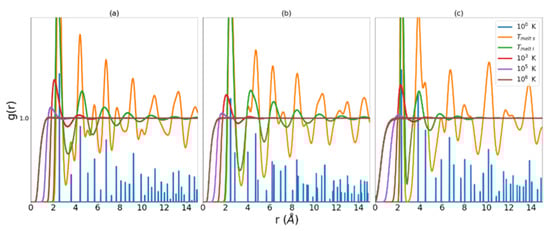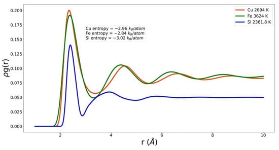 For the liquid entropy, the entropy functional takes, as input, radial distribution functions of the type defined below []. RDFs used as input to the entropy functional were calculated with bins of width 10−3 Å utilizing an in-house code.