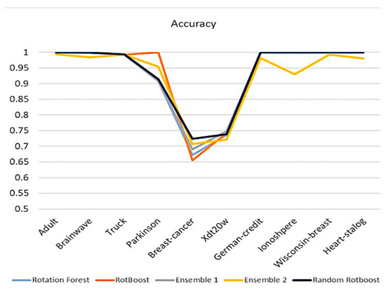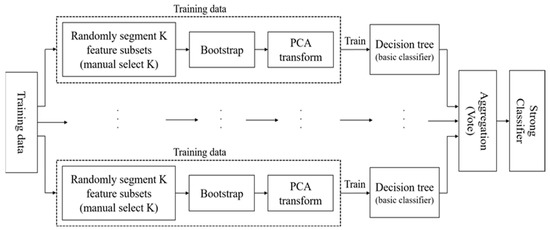 - Rodriguez, J.J.; Kuncheva, L.I.; Alonso, C.J. Rotation forest: A new classifier ensemble method. IEEE Trans. Pattern Anal. Mach. Intell. 2006, 28, 1619–1630. [Google Scholar] [CrossRef]