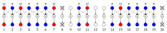 - Polyanskiy, Y.; Poor, H.V.; Verdu, S. Channel coding rate in the finite blocklength regime. IEEE Trans. Inf. Theory 2010, 56, 2307–2359. [Google Scholar] [CrossRef]