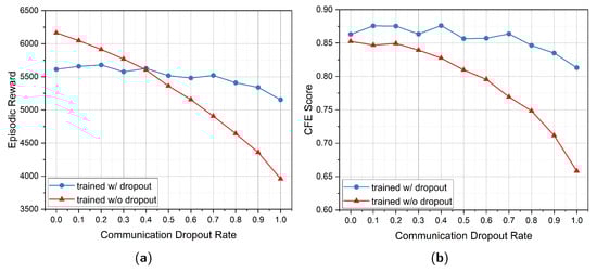 Other factors such as energy consumption and collisions are considered as well. According to Equation (6), we simply define an energy term as . UAVs that consume less energy are expected to gain higher rewards. Then, we define a penalty term when UAV u collides with the fixed boundary in our scenario, otherwise put .
