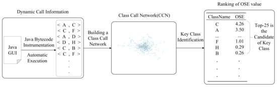 The framework of our KEADA approach is shown in Figure 1. The KEADA approach mainly includes three parts: (i) Software structure information extraction: obtaining class-level call information according to method invocation when the software is running; (ii) software networks building: building weighted, directed software networks according to the method call information; and (iii) identifying key classes: employing the OSE metric to calculate the importance of each class and sorting them in descending order. We set a threshold, and the sorted classes within the threshold are regarded as the key classes identified by our approach.