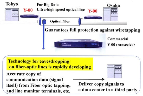 The current optical network was not laid out in a planned manner, but was configured by extending the existing communication lines for adapting the demand. In the future, the configuration and specifications of the optical network will be determined following to new urban planning. An actual example is the smart city that Toyota Motor Corporation et al. have disclosed as a future plan. Many ideas are also being discussed in other organizations. Recently, NTT has announced a future network concept so called IOWN. In these systems, the security of the all optical network with ultra-high speed is also important issue. The group of QKD and the group of Y-00 are promoting their respective technologies. However, recently, NSA and others announced the international stance on QKD [31]. They have a negative view of QKD, because the communication performance of QKD based on weak signal is not sufficient for applications to real situations. So, we do not employ QKD for key distribution of the initial key of Y-00, as shown in Figure 3 (Appendix B).