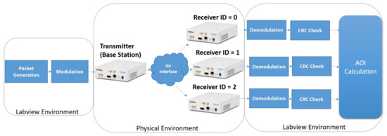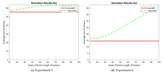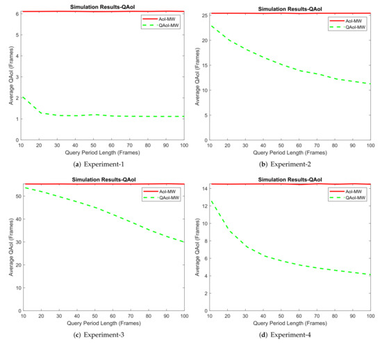 receivers were active in the network. Within the experiments, we adjusted the query period of the receivers and observed the result of this increment from the AoI and QAoI perspectives. We initialized query periods to prevent the overlap of the query frames for each receiver. We assume