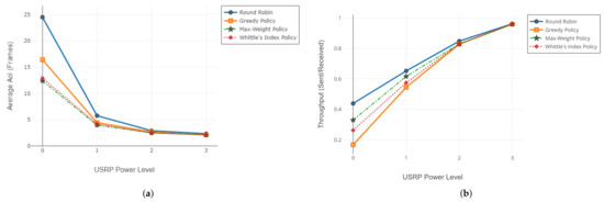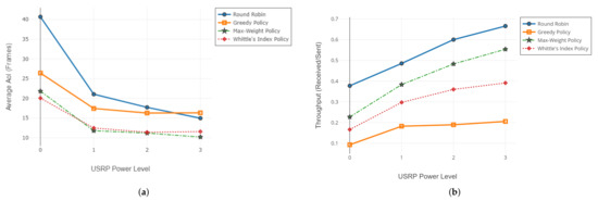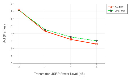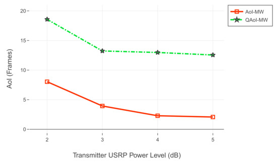 Throughout this section, we share the results that we obtained in the USRP environment and MATLAB simulations. We share the performances of AoI-aware policies in