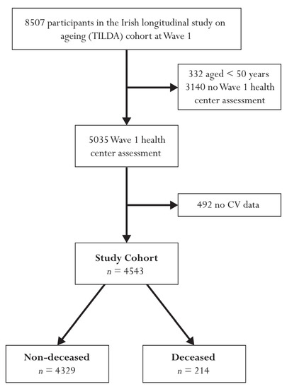 - Donoghue, O.A.; McGarrigle, C.A.; Foley, M.; Fagan, A.; Meaney, J.; Kenny, R.A. Cohort Profile Update: The Irish Longitudinal Study on Ageing (TILDA). Int. J. Epidemiol. 2018, 47, 1398–1398l. [Google Scholar] [CrossRef]