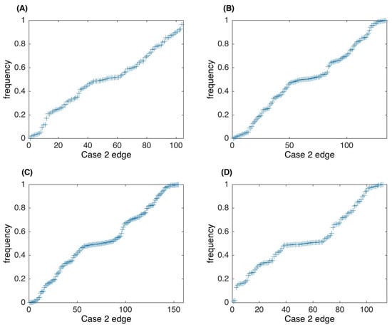 Edge frequency of the Case 2 edges in 1000 networks. (A) Threshold value . (B) . (C) . (D) .