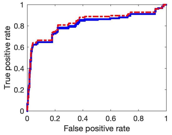 After examining the dependence of network structure on the variable order, we next show the accuracy of the proposed SPCA by comparing with the two published methods, namely the PCA-PMI and PC-stable algorithm with PMI. We first use the SOS DNA repair gene dataset for reconstructing gene regulatory networks [51]. We use the published PCA-PMI algorithm in the literature [24] and the R-package pcalg for the PC-stable method [60]. Figure 3 shows that SPCA has an AUC value of 0.8649 that is larger than the value of the PC-stable algorithm with PMI (i.e., 0.8605) and that of PCA-PMI (i.e., 0.8571). These results suggest that SPCA has better accuracy than these two algorithms. In addition, the AUC value of the PC-stable algorithm is slightly smaller than that of the PCA-PMI, which suggests that the PC-stable algorithm may increase the false–positive regulations.