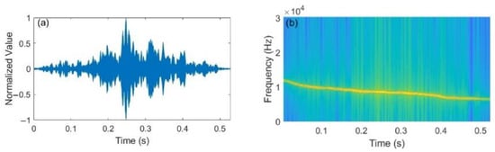The dolphin is an advanced mammal in the ocean. The clicks of bottlenose dolphins are echolocation signals, with the frequency range of 10 Hz–150 kHz and the duration of 25 μs. After a long evolution, dolphin sonar has the function of communication. The whistles of bottlenose dolphins are signals for communication with the frequency range of 100 Hz–24 kHz and the duration of 1 s. The operating frequency of most underwater acoustic devices ranges from 1 kHz to 40 kHz [], which overlaps with the frequency range of dolphin signals. Hence, it is feasible to use the sound of cetaceans for covert communication in the underwater environment. Since clicks are a kind of narrow pulse signal, it is difficult to make the transducer. Hence, the bottlenose dolphin whistle is selected as the reference signal for bionic covert communication.