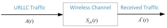 Network calculus is a queueing theory for QoS analysis [14], which has been widely used for performance evaluation in various networks. For the consider URLLC traffic model and wireless channel model described in Section 2, an equivalent analysis model for single link transmission can be abstracted as Figure 2 shows. The arrival process, denoted by , is composed of all information packets generated from a URLLC information source; while the service process, denoted by , is the service provided by the wireless channel. In network calculus analysis, arrival curve and service curve are defined to describe the characteristics of (cumulative) arrival process and (cumulative) service process, respectively, as follows.
