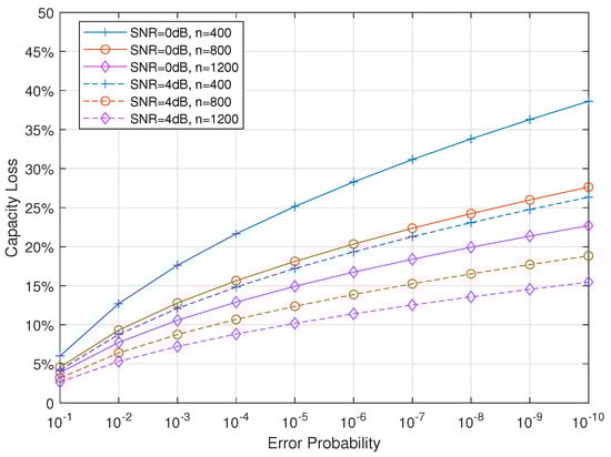 The second item is composed of two parts and is introduced because of reliability requirement (denoted by ) and finite coding length (denoted by n). Here, the capacity loss is defined and discussed