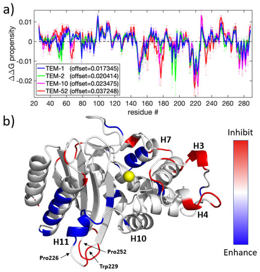 - Marciano, D.C.; Pennington, J.M.; Wang, X.; Wang, J.; Chen, Y.; Thomas, V.L.; Shoichet, B.K.; Palzkill, T. Genetic and structural characterization of an L201P global suppressor substitution in TEM-1 β-lactamase. J. Mol. Biol. 2008, 384, 151–164. [Google Scholar] [CrossRef] [PubMed][Green Version]