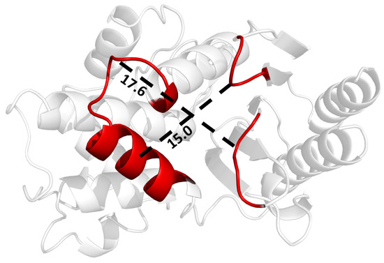 Notice that Equation (2) allows the unperturbed Hessian matrix elements in Equation (3) to be calculated without having to specify the unperturbed . The spring placed between atoms i and j represents a harmonic potential provided by where the position vectors are obtained from the reference structure used for structural alignments. All pairwise harmonic potentials that represent the perturbations are added to obtain . Then, using Equation (3), the perturbed Hessian matrix is provided by . In this work, kcal/(mol Å2); however, as previously shown [49], the results are independent of this value in the linear response limit, where is small. These perturbations to the Hessian matrix change the normal mode frequencies, which are obtained using first order perturbation theory. Following the theory of dynamic allostery set out by Cooper and Dryden [22], the change in the binding free energy () of an endogenous ligand at the active site induced by the binding of an effector molecule can be calculated from the resulting changes in normal mode frequencies.