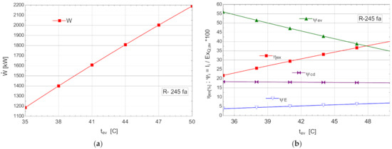 Liu C. et al. [20] studied, based on the Second Law of Thermodynamics, the influence of the evaporation temperature on the performance of subcritical ORC. The analysis considered 28 working fluids used in an ORC to recover waste heat. They studied the influence of the critical temperatures of the working fluids on the choice of the optimum temperature of evaporation. The work reported recommendations for the temperature difference between the critical temperature of the organic fluid and the temperature of the waste heat source for an optimum evaporation temperature that led to a maximum Second Law efficiency.