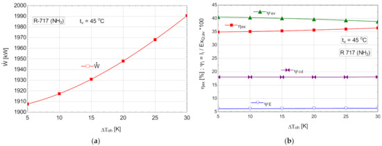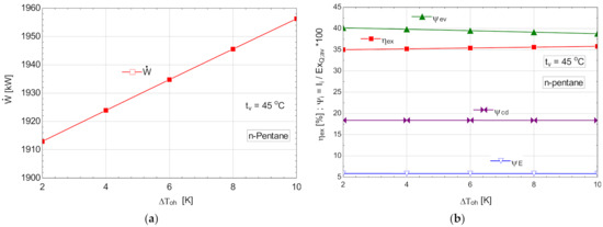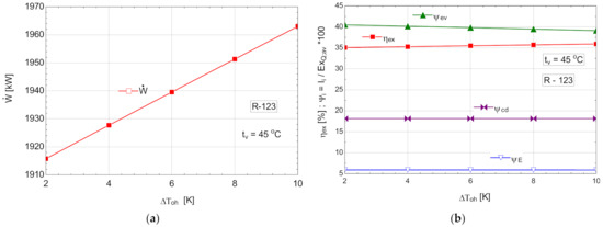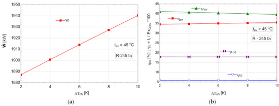 Figure 4b shows that the cycle, in the chosen functional variant, worked with the subcooling of the condensed liquid.