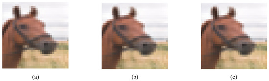 Image quality comparison of multiple images processed by ADH: (a) the image modified by ADH for one pixel has a PSNR value of 41.37; (b) the image modified by ADH for three pixels has a PSNR value of 41.03; (c) the image modified by ADH for five pixels has a PSNR value of 40.85.