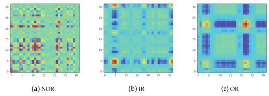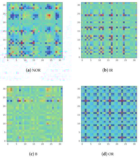 The vibration signals in the four cases are converted into MTF, and the conversion results are shown in Figure 6. It can be seen that under different fault conditions, these converted images are totally different from each other, and these images can be intuitively classified.