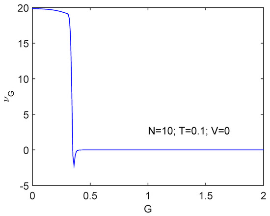 We depict versus G for , , and (units for which ). There is a significant drop at the critical -value at which superconductivity becomes established. clearly detects the phase transition.