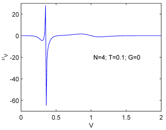 Spin-flip interaction workings at , , and . We depict versus V. At the critical spin-flip coupling constant order suddenly augments, but after the transition, things return to the original stage as V keeps growing.