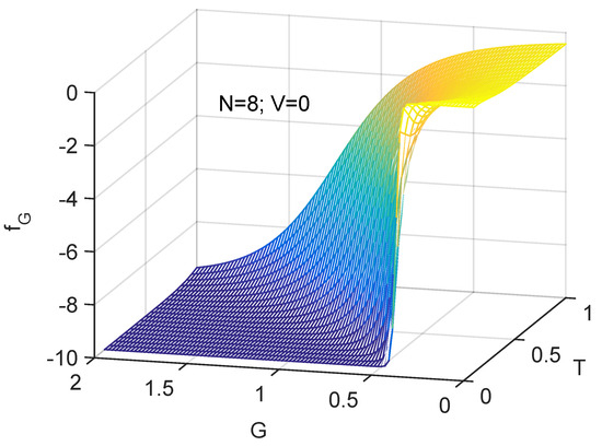 We start discussing the information cost f in Figure 1, where we depict versus G together with the free energy F. The behavior of F is of critical importance to decide whether we speak of order or of disorder. We know that decreases at the superconductivity transition. We also see in the graph that is negative. Thus, and order augments. Figure 5 and Figure 6 show that the quasi-negentropy grows at the phase transition.