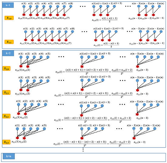 where , is 0 or 1, which denotes the average or difference operator at layer m. The partial calculation process is shown in Figure 2.