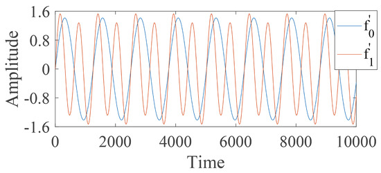 where d represents constant term, and denote amplitudes of periodic function and with frequency , . In the time domain, the amplitude difference of each fault is not obvious. For example, assume a normal state and one incipient fault, and , respectively, is described through as