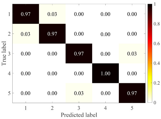 The basic setup of operation parameters is that N = 1500 rpm, M = 0.7 Nm, and F = 1000 N [25]. Then, fault data are assigned to five levels according to Table 1.