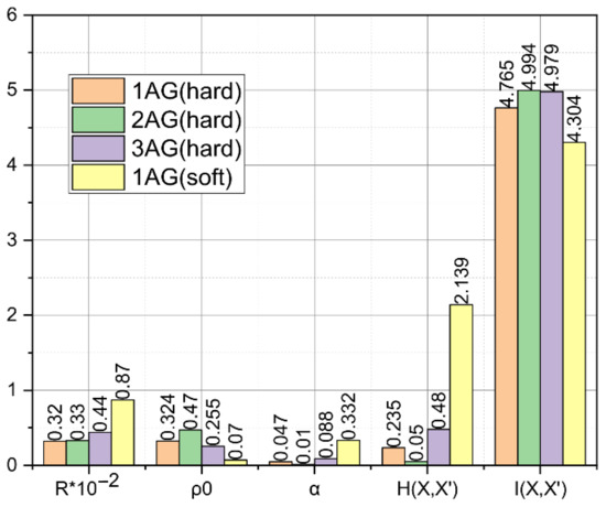 From the empirical results shown in Figure 2, we can draw conclusions about the representativeness of the proposed metric for estimating the personified phonetic saturation of speech. It turned out that the highest phonetic saturation (11) is characterized by the speech of persons from the second age group. Of particular note are the data characterizing the phonetic saturation of speech of persons from the first age group, whose phonetic alphabets were determined by choosing a hard and soft set of formation conditions- and , respectively. It is seen that the phonetic saturation of speech of persons from the first age group j, estimated based on phonetic alphabets , determined by choosing a hard set of formation conditions, was higher than the same indicator for the same group of persons , estimated based on phonetic alphabets , determined by choosing a soft set of formation conditions. This is without assuming that the capacity of the phonetic alphabet of the second variant exceeds the capacity of the phonetic alphabet of the first variant more than twice. This fact allows us to outline a promising direction for the investigation of the function , the extremum of which can potentially indicate the elements of the personalized phonetic alphabet, in which the individuality and informativeness of speech are most pronounced.