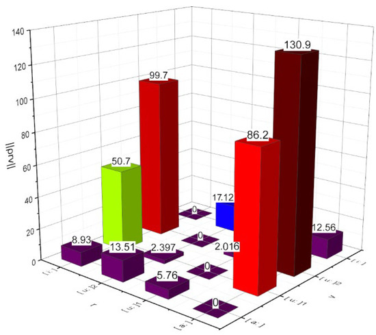 Further use of the data presented in Figure 3 will be demonstrated by the example. Consider the data from the matrix for a pair of phonemes . These data characterize the situation when the phoneme is recognized as a phoneme . Figure 3 shows that . The number of degrees of freedom for the -distribution in expression (28) is assumed to be equal to . If the decision on the result of phoneme recognition is made according to the solution rule (25), then , and we have . If the decision on the result of phoneme recognition is made according to the decision rule (22), then we have . According to Expression (28), we have . Thus, the probability of confusion when deciding on the result of phonetic analysis on the example of phonemes and using the solution rule (22) in comparison with Rule (25) is almost three times less. Calculations similar to the above were performed for all pairs of phonemes of different names in Figure 3. For all implementations, Rule (22) allowed us to obtain a lower estimate of the probability of confusion compared to Rule (25).