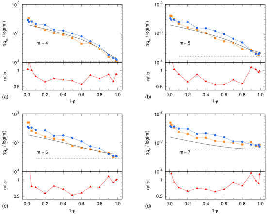 In the case of the ARFIMA process, the two sample means continue coinciding also at progressively longer autocorrelation times (). Conversely, in the case of the Lorenz system and for , the values of PE evaluated on surrogate time series (yellow squares) start to significantly diverge from the values (blue dots) computed out of the set , consisting of the original synthetic time series X and its equivalent replicas. Indeed, surrogate data yield higher PE values than original time series, thus underpinning the deterministic nature of the system’s dynamics. The fact that no divergence is observed in the case of the ARFIMA process hints at an intrinsically noisy content of the time series also at long autocorrelation times.