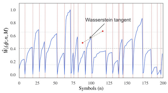 where is the sequence length, expressed in terms of the number of segments from which the relative entropy measure is computed, with index Similarly, the normalized Wasserstein-1 transportation distance is given by